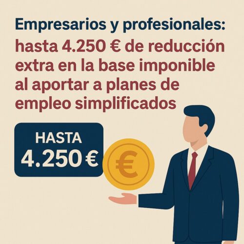 Empresarios y profesionales : hasta 4.250 € de reducción extra en la base imponible al aportar a planes de empleo simplificados